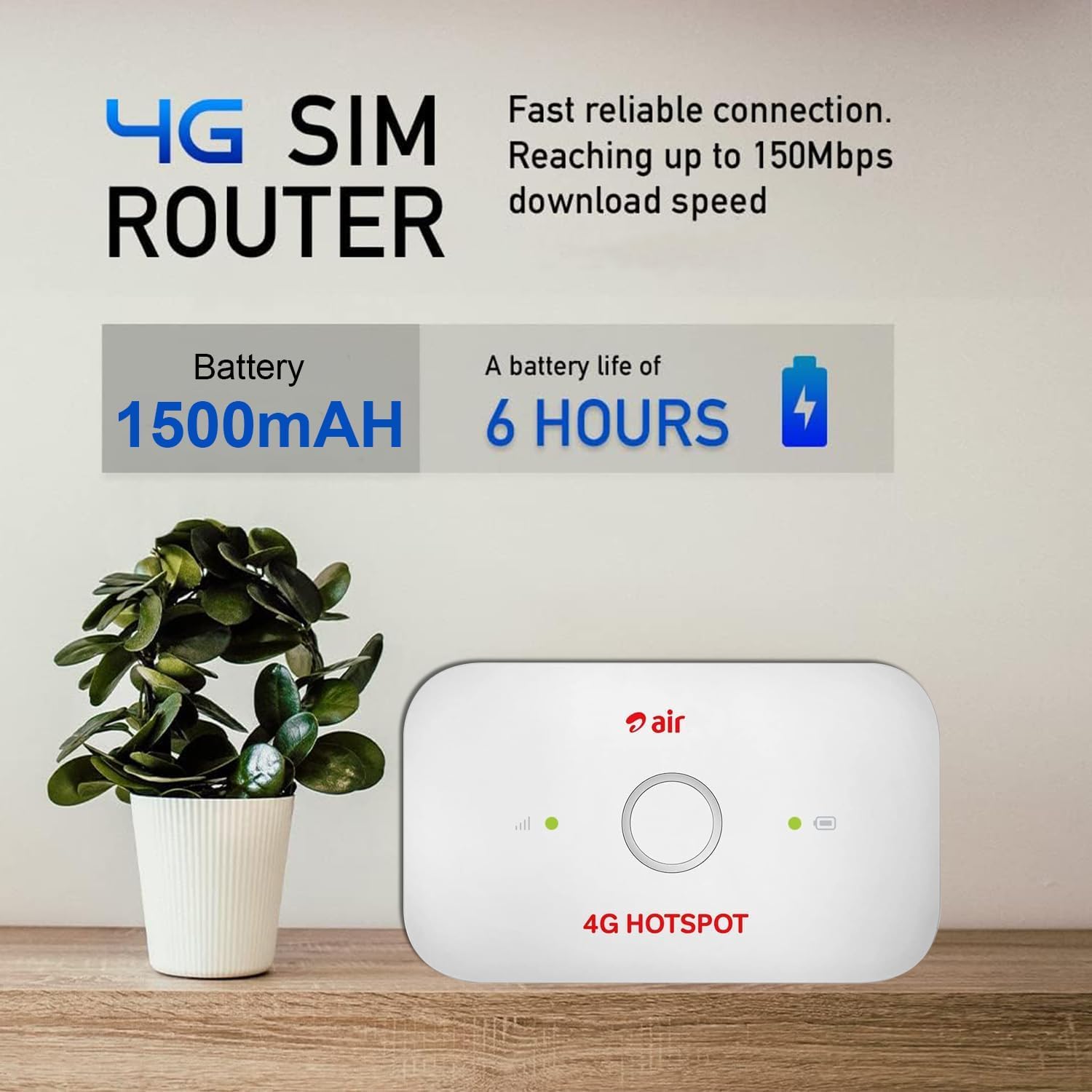 - Portable 4G Wi-Fi Network: Create your own high-speed 4G Wi-Fi hotspot at home, work, or on-the-go. No installation required—simply insert an Airtel 4G SIM, switch on the device, and enjoy instant connectivity.
