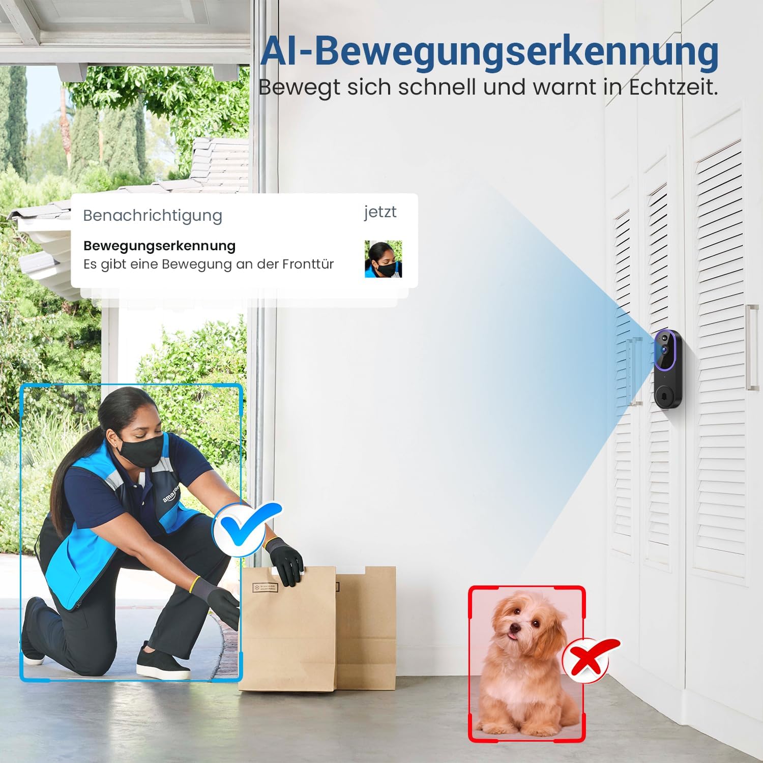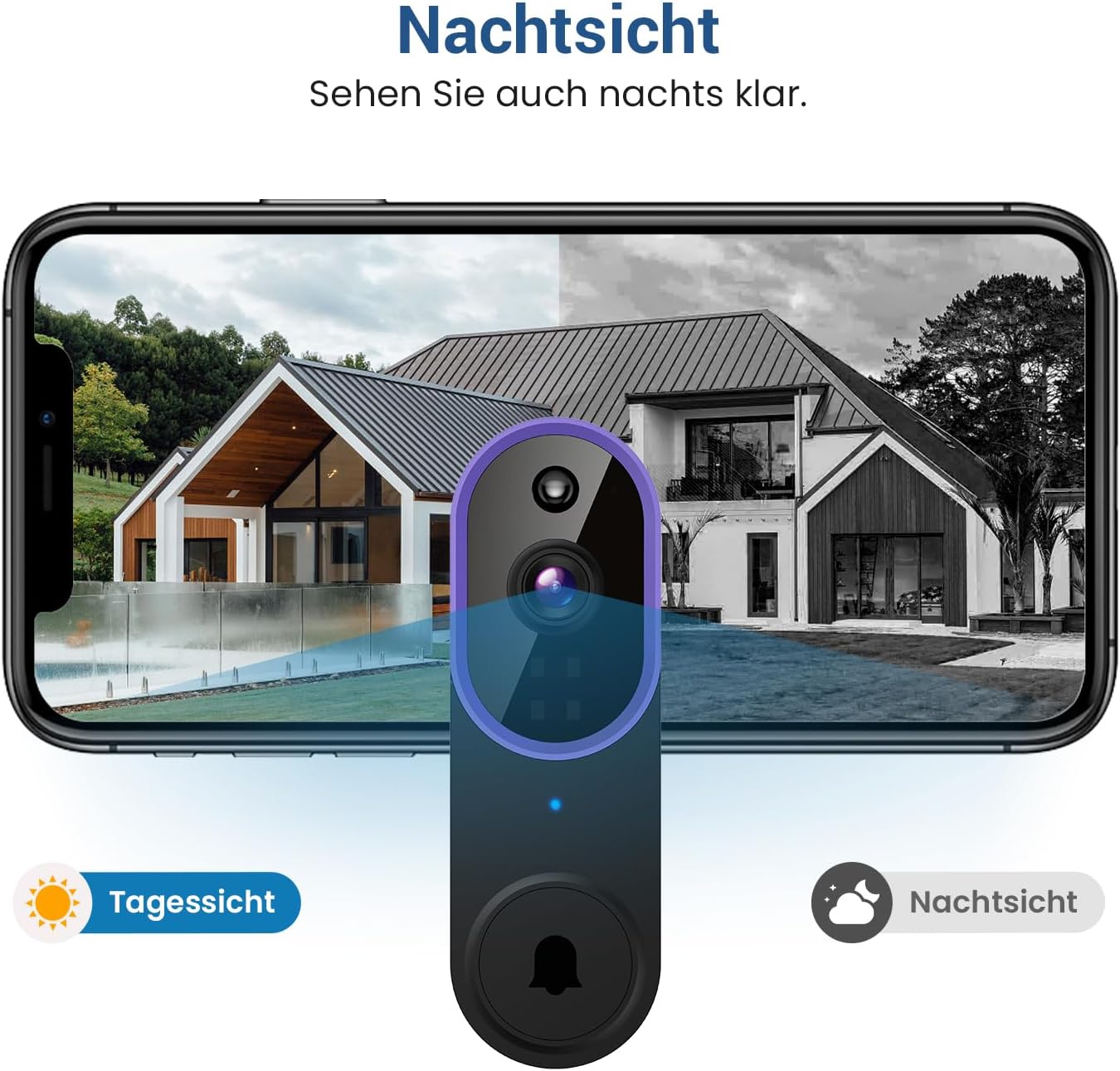 Sécurité qui dure même dans l’obscurité : vision nocturne améliorée : avec quatre LED infrarouges et un capteur infrarouge intelligent, notre sonnette vidéo offre une surveillance continue pour garantir des enregistrements vidéo clairs même dans des situations faiblement éclairées.